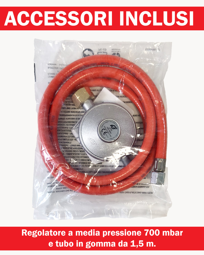 Regolatore media pressione (700 mbar), Tubo in gomma 1.5 mt
