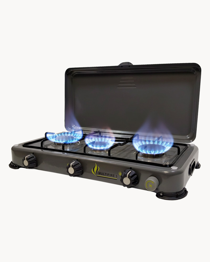 Fornello a 3 Fuochi con Bruciatori in Ghisa – Compatto, Potente e con Accensione Piezo Automatica